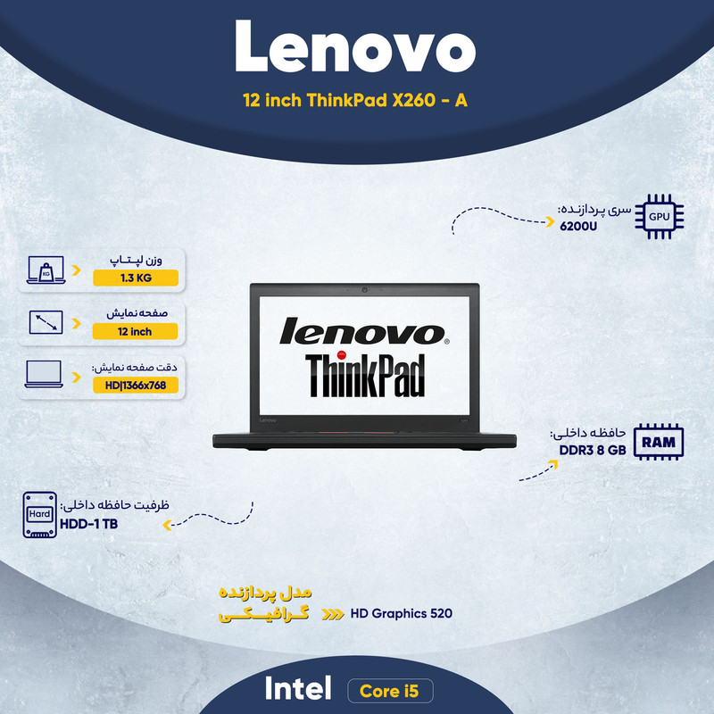 لپ تاپ 12 اینچی لنوو مدل ThinkPad X260 - A